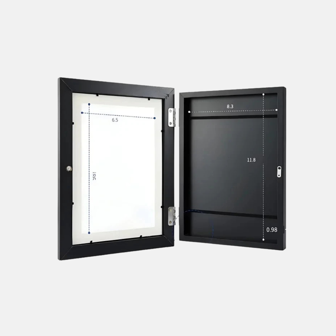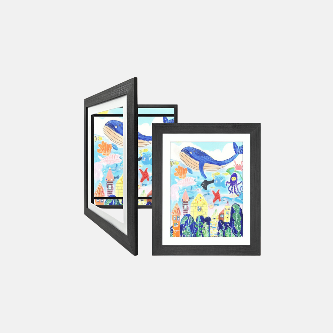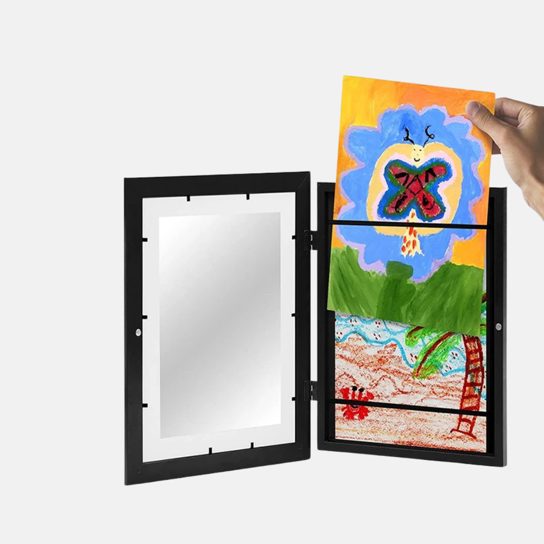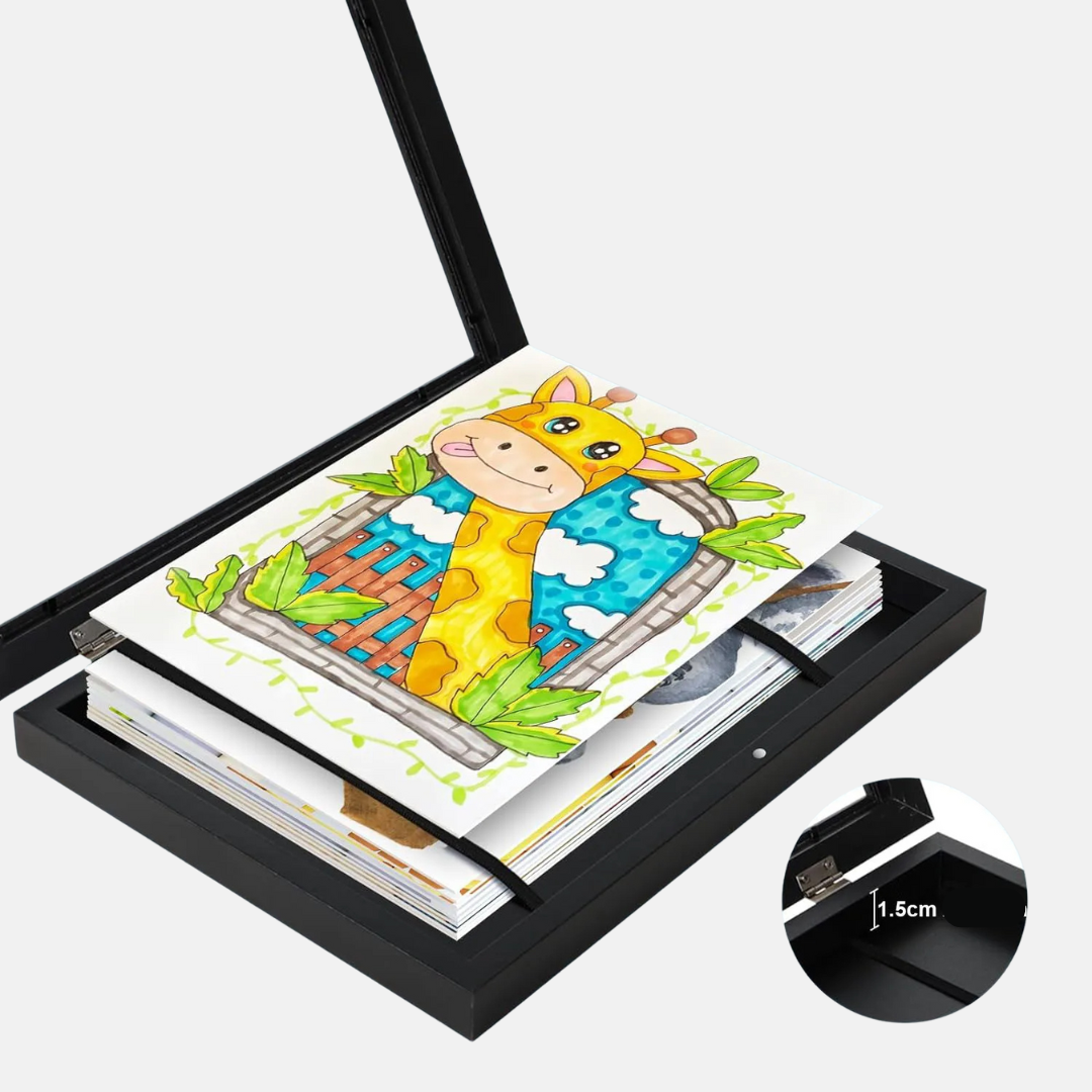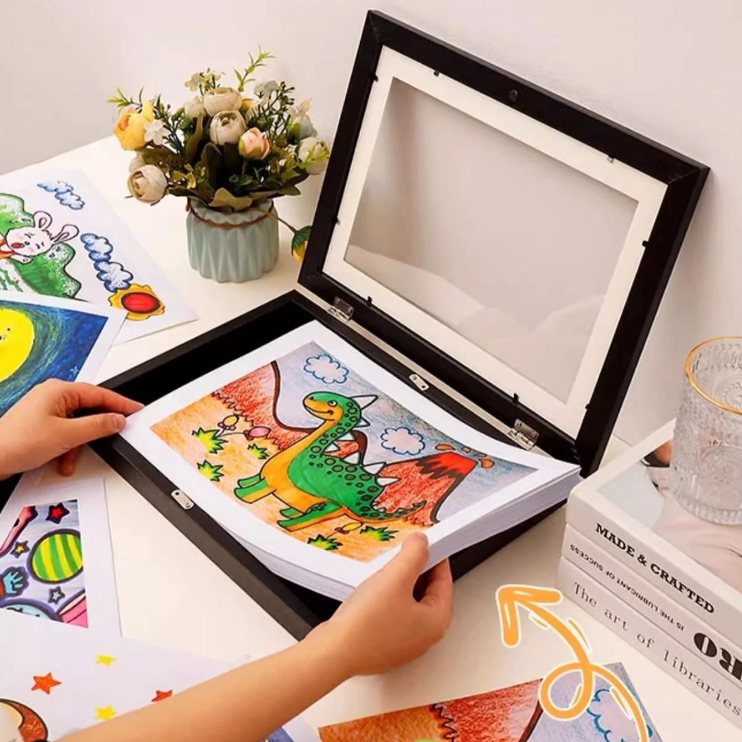 Imaginez un magnifique cadre en bois avec une façade en verre trempé incassable, capable de contenir jusqu'à 200 dessins. Fini les pages froissées ou perdues ! Grâce à son ouverture magnétique, l'échange d'œuvres d'art se fait en quelques secondes. Son design épuré et neutre s'intègre parfaitement à tout décor tout en protégeant les créations les plus précieuses de votre enfant.