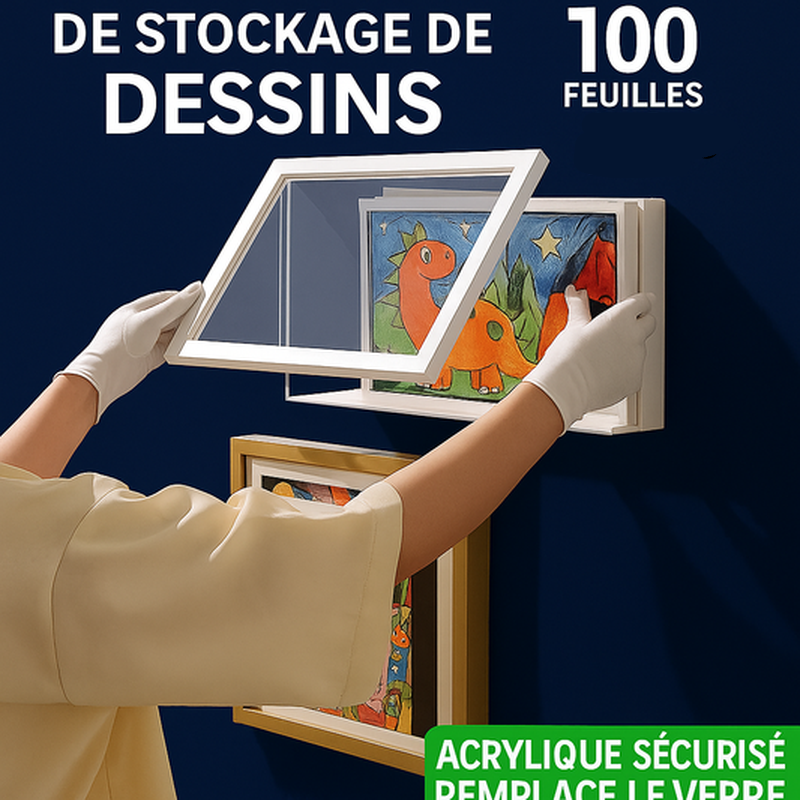 Vos murs sont couverts de dessins et vous manquez de place ? Transformez ce chaos en une superbe galerie d'art grâce au cadre Artistik™ - plus qu'un simple espace de rangement, c'est une façon élégante d'honorer la créativité de votre enfant tout en gardant votre maison magnifiquement organisée.