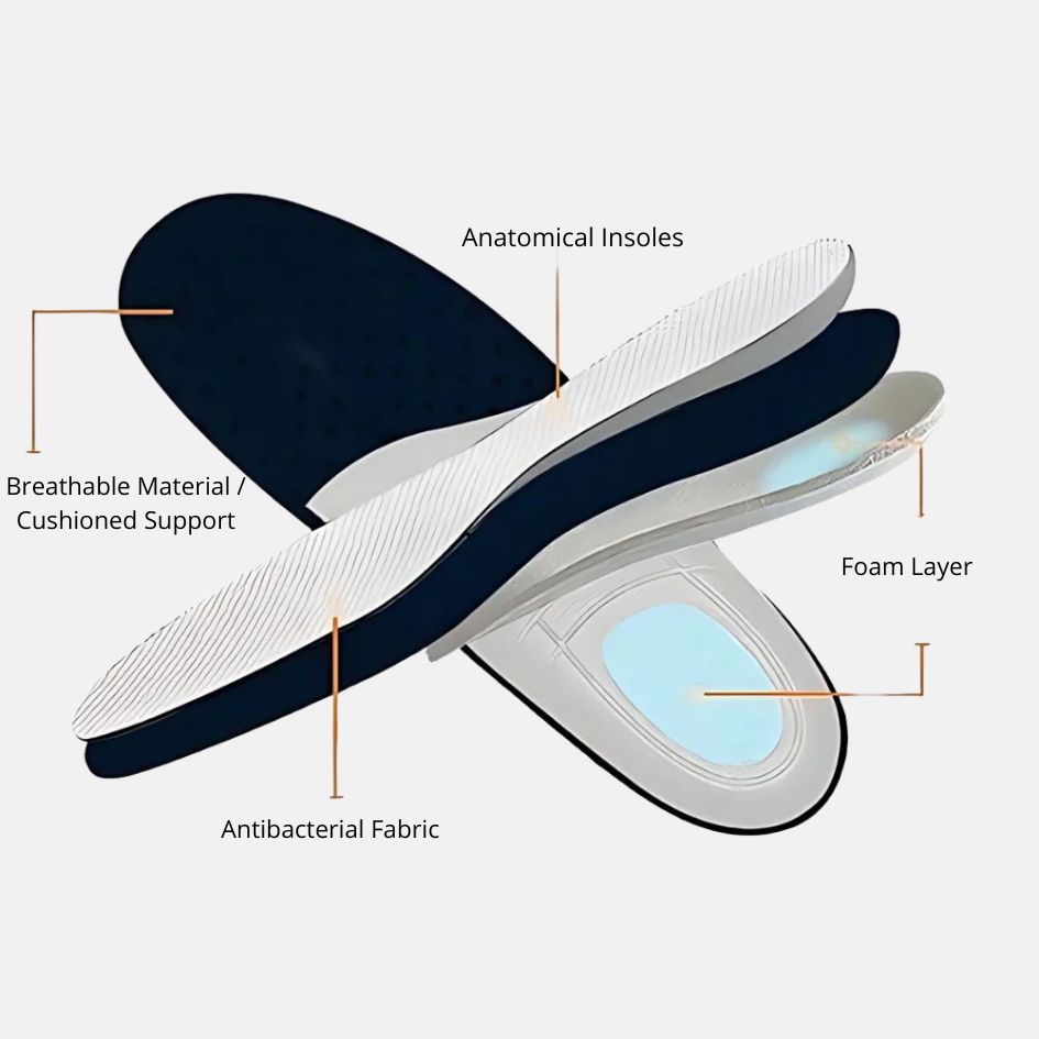 Chaque paire de chaussures OrthoSport™ est fabriquée avec une semelle intérieure à trois couches qui soutient votre voûte plantaire, amortit votre talon et aligne votre foulée. Que vous souffriez de fasciite plantaire, de pieds plats ou que vous souhaitiez simplement améliorer votre posture, ces chaussures guident délicatement vos pieds vers une harmonie parfaite - pas de pression, pas de douleur.