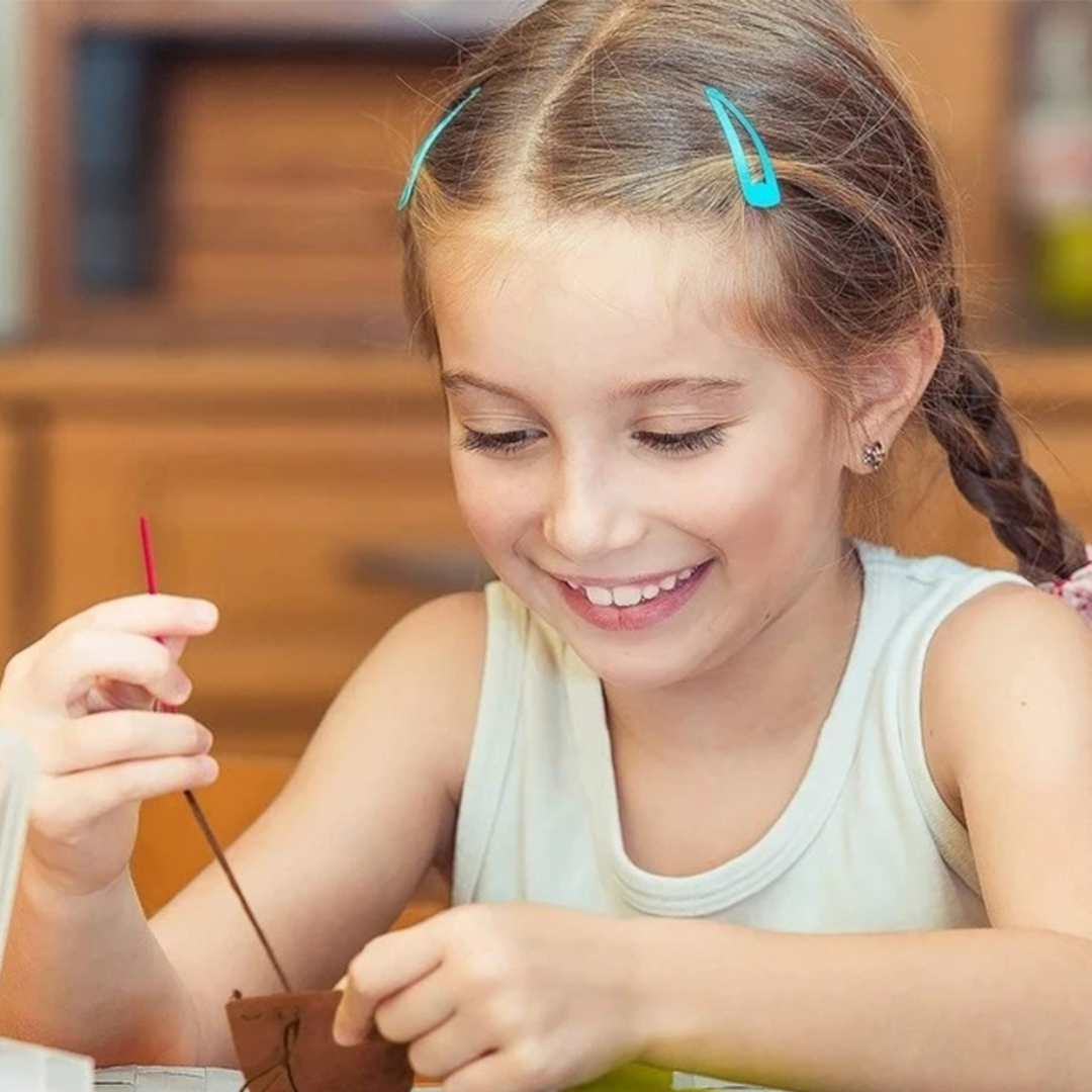 Imaginez votre enfant pleinement engagé, les yeux concentrés, cousant fièrement sa propre création colorée. Le kit de couture PetitDesigner™ transforme les moments du quotidien en aventures créatives. Conçu pour initier les enfants aux bases de la couture d'une manière sûre et ludique, c'est plus qu'un simple jouet : c'est une expérience sans écran qui renforce la confiance en soi et aide les enfants à grandir par la découverte pratique.